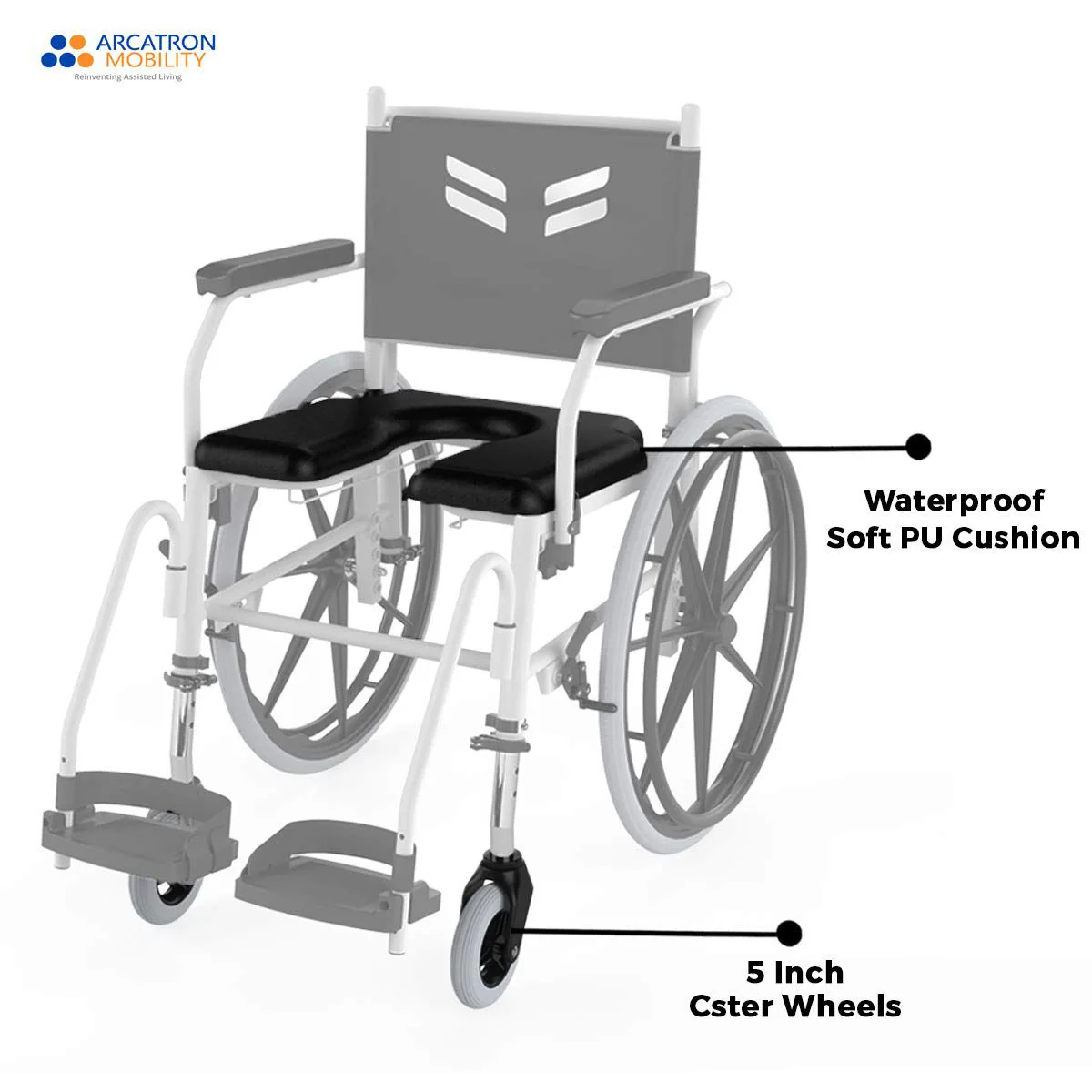 - Waterproof Keyhole Shaped Cushion & Convertible to Attendant-Propelled Version